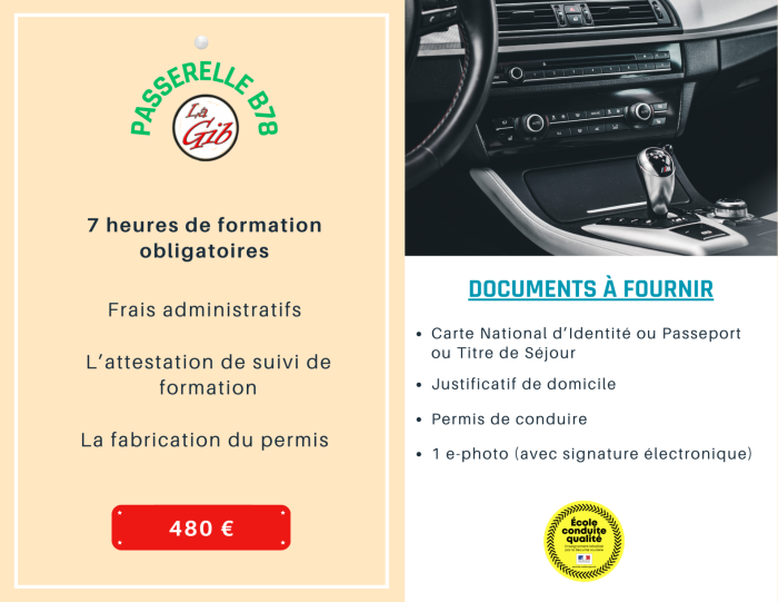 La formation est d’une durée de 7 heures. Elle est dispensée à bord d’un véhicule à changement de vitesses manuel appartenant à l’établissement d’enseignement de la conduite et de la sécurité routière agréé. La formation débute dans un trafic nul ou faible et se poursuit sur les voies ouvertes à la circulation, dans des situations et conditions de circulation variées.